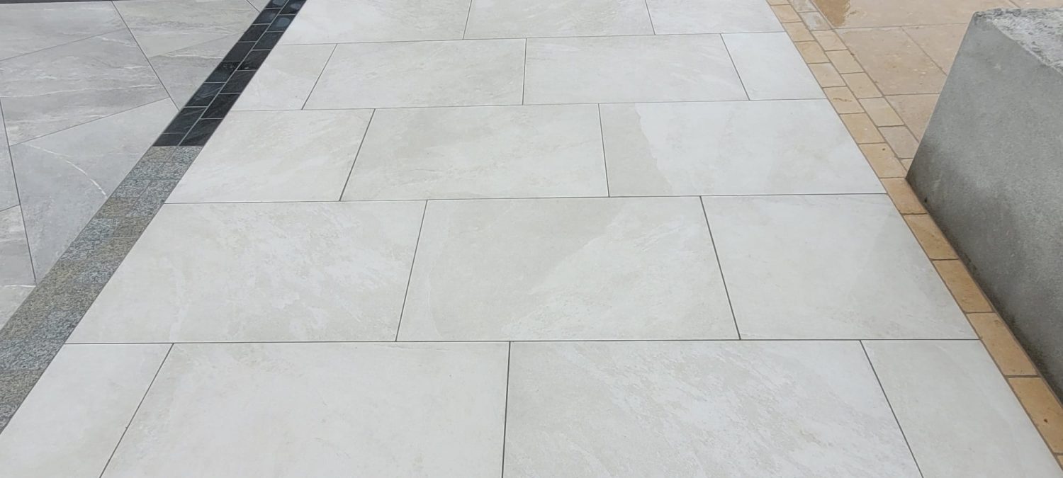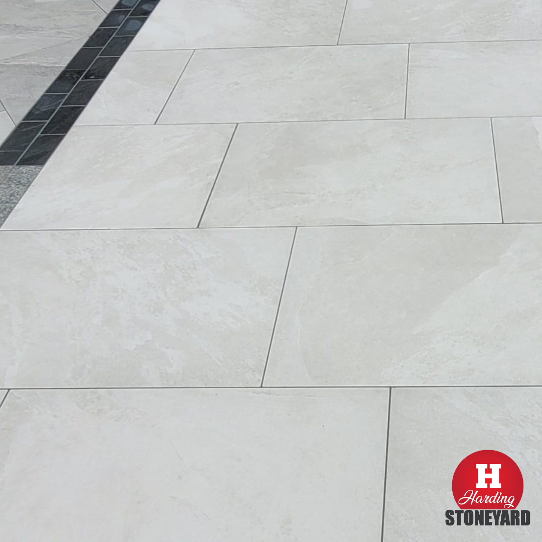 Axis White Porcelain Paving is a gorgeous white porcelain tile. This product is designed to have the aesthetic of natural stone but with the durability and grip of a porcelain tile.