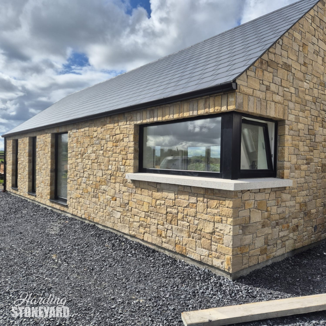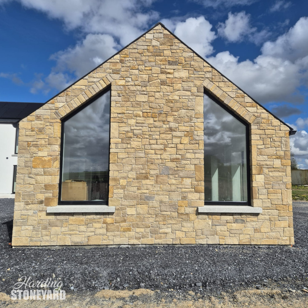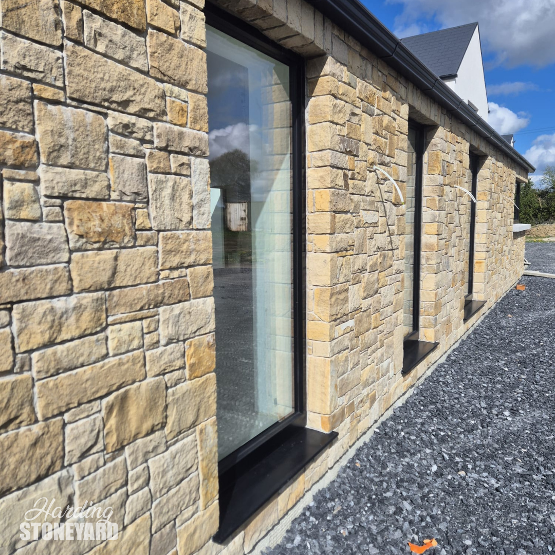 Donegal Sandstone Cladding is a natural stone solution that delivers the authentic look of full building stone without the weight or space requirements. Cut to approximately 30mm thick, it is the perfect alternative where full stone construction isn’t practical, while still achieving a traditional, high-end finish.