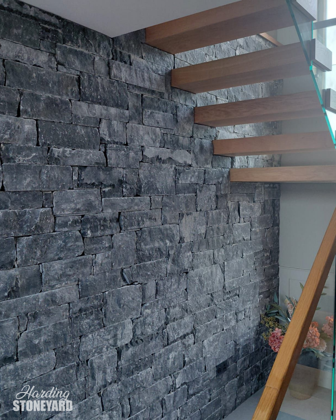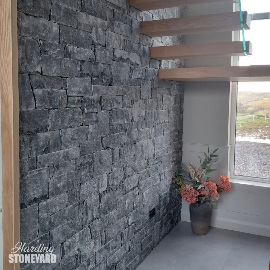 Kilkenny Limestone Cladding is a gorgeous dark blue natural building stone, produced and cut in Co. Kilkenny. This famous stone is sold all over the world and is known for its distinctive dark beauty. One of the key aspects that makes this stone so unique is the variety between each piece. While some stone faces are fully dark, others display fascinating fossil markings throughout.